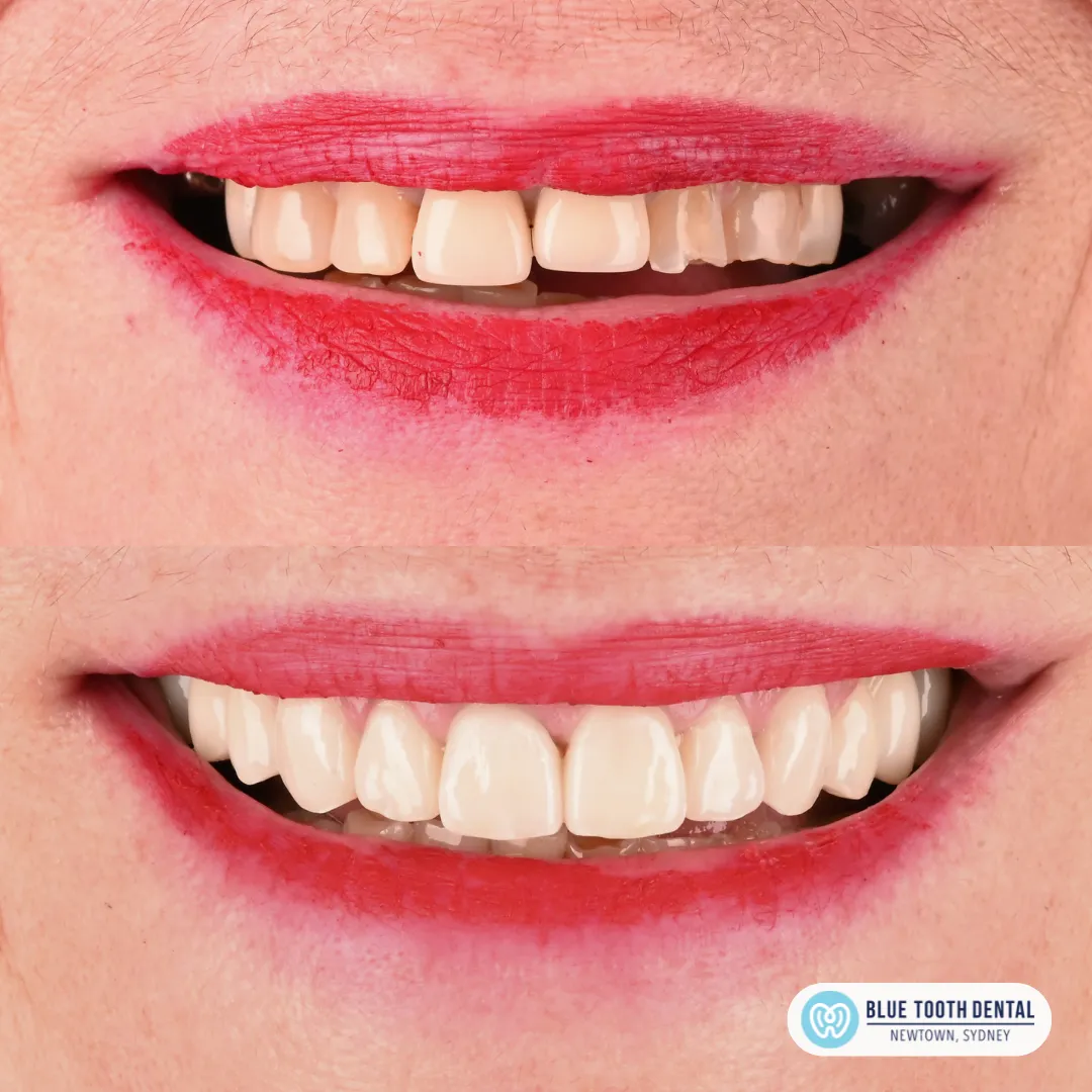 Veneers are thin, custom-made shells that enhance the shape, colour, and symmetry of your teeth — perfect for chips, discolouration, or gaps.